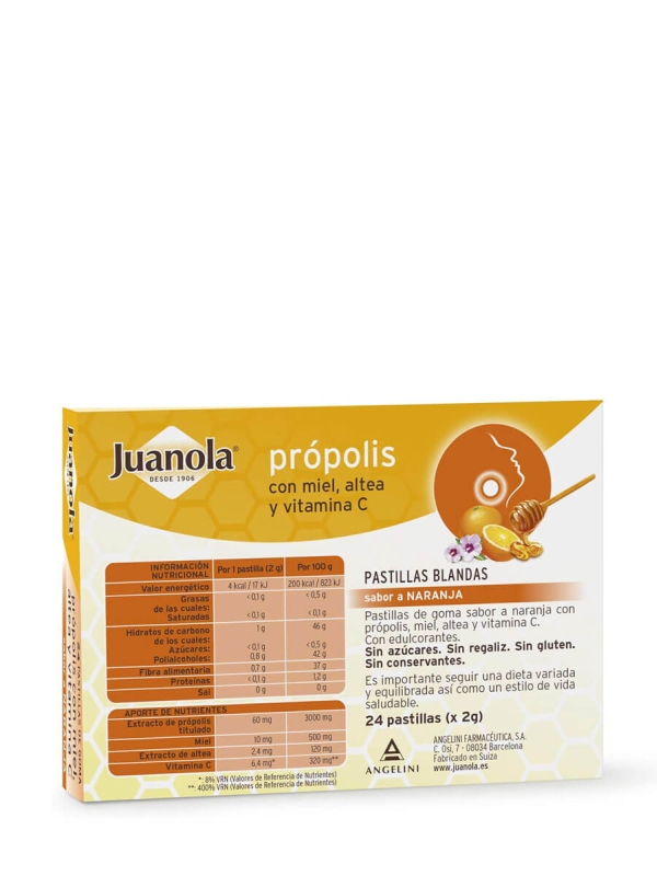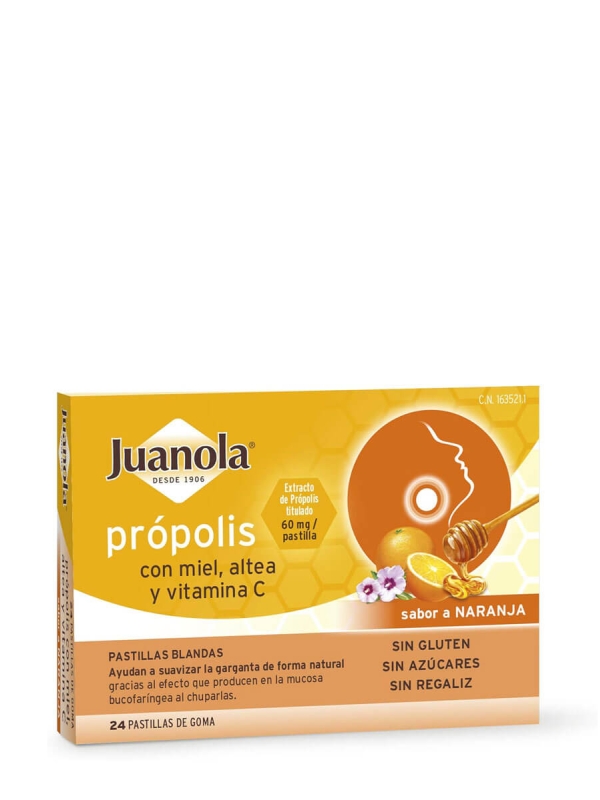 Las pastillas Juanola propolis de naranja son un remedio eficaz para las molestias de la garganta, ya que aclaran y refrescan la garganta. Además, contribuyen al funcionamiento normal del sistema inmunitario.