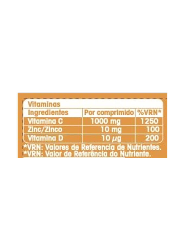 Cada comprimido efervescente contiene 1000mg de vitamina C (acido ascórbico) y 10 mg de Zinc en un excipiente compuesto de bicarbonato de Sodio.